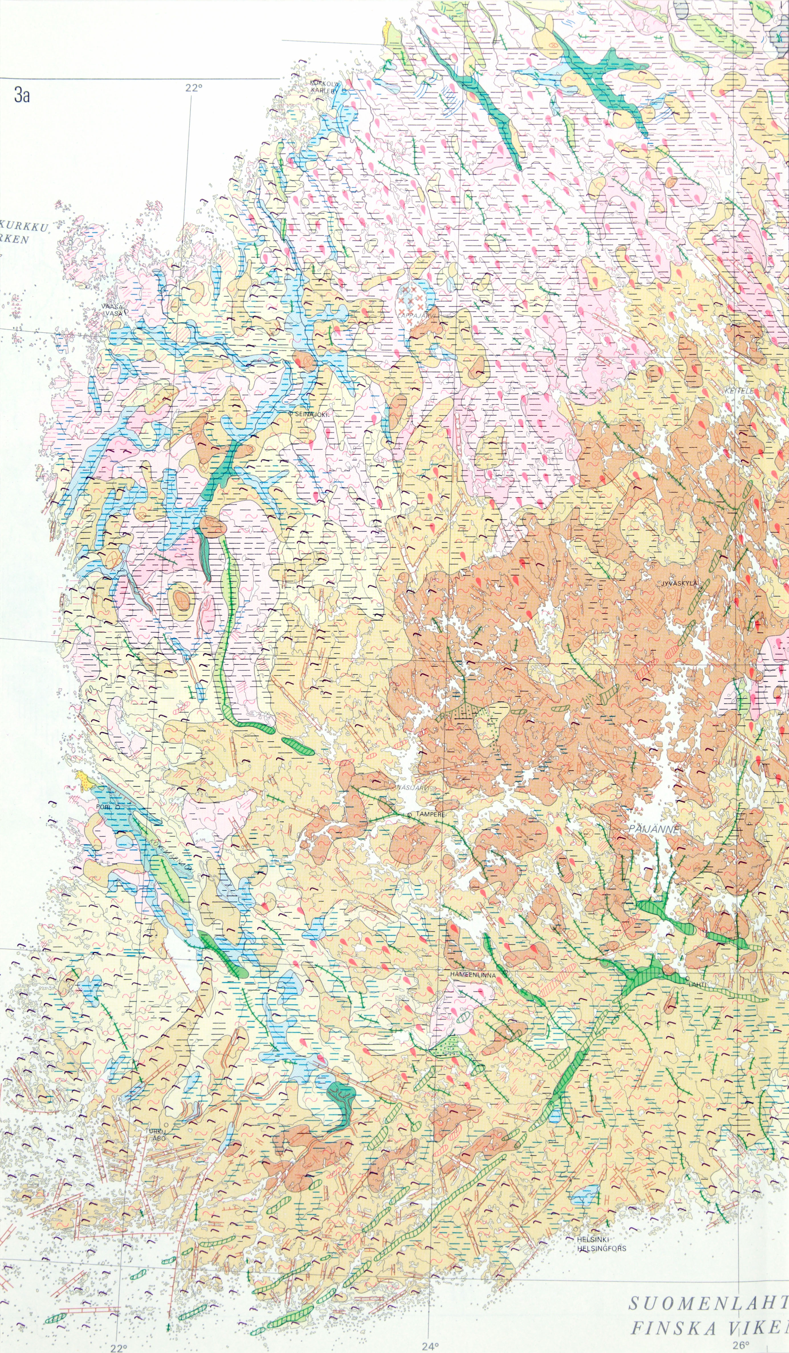 122: 3a. Geomorfologinen yleiskartta – Geomorfologisk generalkarta: Eteläosa – Södra delen (kaakkoisosa)