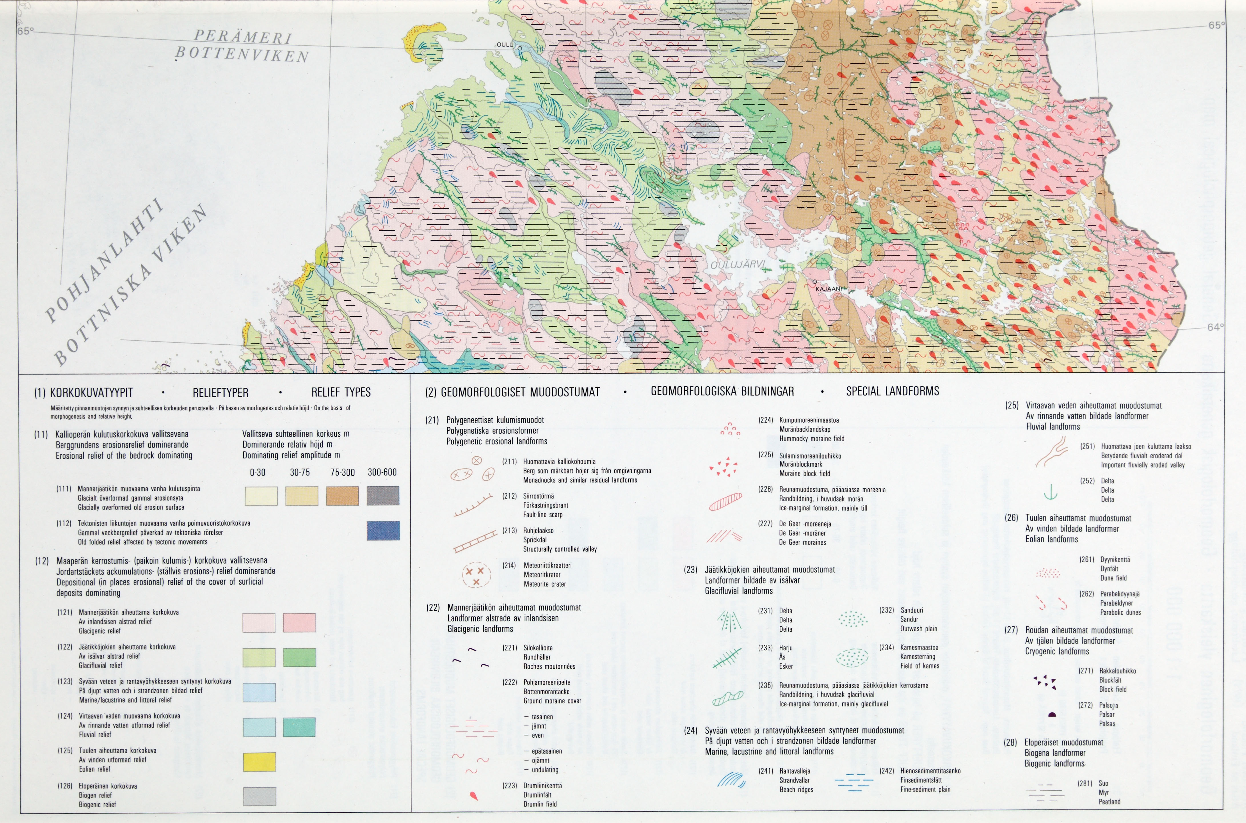 122: 4a. Geomorfologinen yleiskartta – Geomorfologisk generalkarta: Pohjoisosa – Norra delen (selite, Pohjois-Pohjanmaa ja Kainuu)